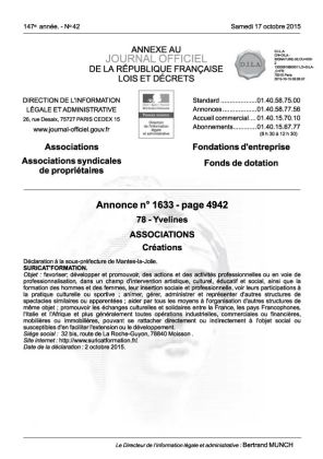 Association loi 1901 n°W781004691 Annonce n°1633-page 4942 Journal Officiel de la République Française